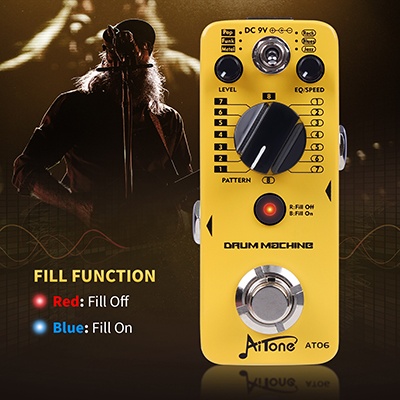 AITONE Drum Machine Guitar Pedal with Real-Time Fill Function 48 Drum Grooves 6 Music Styles & Tap Tempo EQ Presets for Electric Guitar