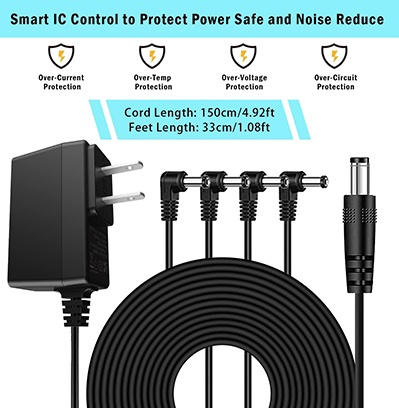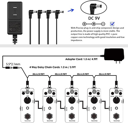 AITONE DC 9V Guitar Pedal Power Supply AC Adapter with 4 Way Daisy Chain Power Cord Cables for Pedal Keyboard Tip Negative 800mA-1A