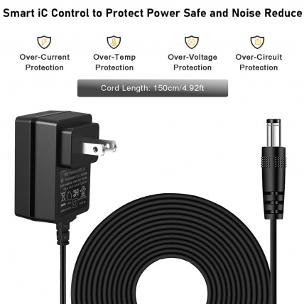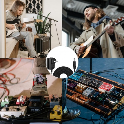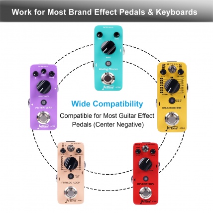 AITONE DC 9V 500mA Power Supply AC Wall Charger Adapter 4.92ft Compatible for Guitar Effect Pedals (Tip Negative)