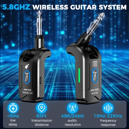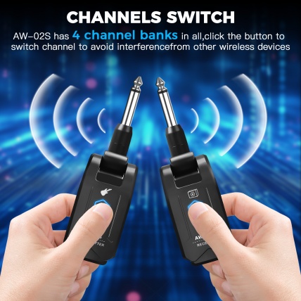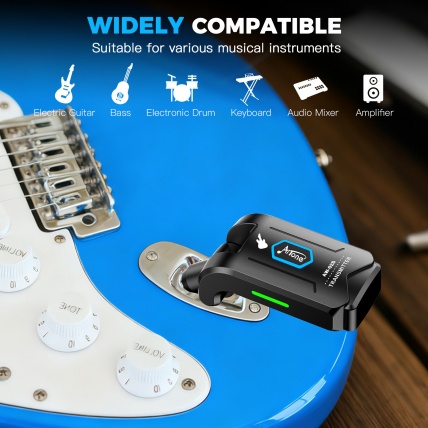 AITONE 5.8GHz Wireless Guitar Transmitter Receiver 4 Channel Rechargeable Cordless Guitar System 65ft Long Range Superior to 2.4GHz Anti-Interference for Electric Guitar Bass